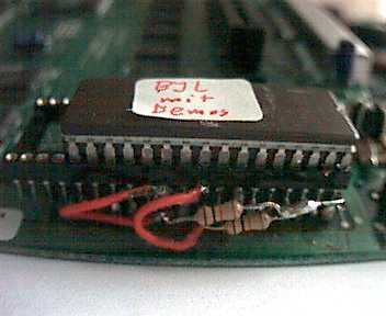 7) Solder 3 wires to the switch, the main (which is switched) to the /CE on the PCB (don't make a short cut !) and the other two either to pin 22 of the ROM and the socket.