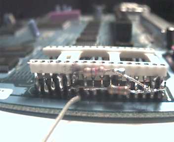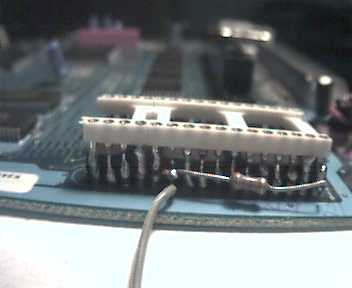 6) Solder the second resistor at pin 22 of the socket and at pin 32