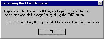 If you have followed the instructions correctly the FLASH-chips should now be erased and then the Jaguar-file should be send to the FLASH-card, the "bytes left"-value should be decreased during this process.